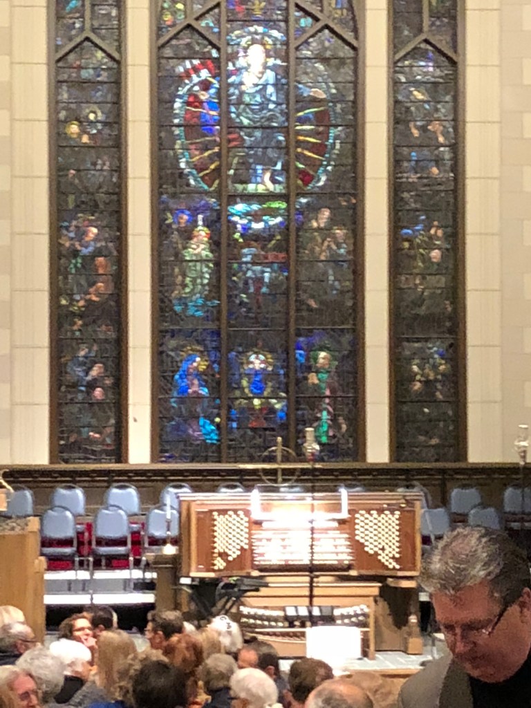The dedicatory concert featured Ken Cowan, head of the organ program at the Shepherd School of Music at Rice University. He literally pulled out all of the stops, tantalizing and thrilling a packed house with the power and potential of this magnificent instrument. His varied program included Bach’s Pasacaglia and Fugue, no surprise in a church sanctuary, and Saint Saens Danse Macabre, totally unexpected. The choice apparently was OK with the Presbyterians: the applause was loud and enthusiastic.