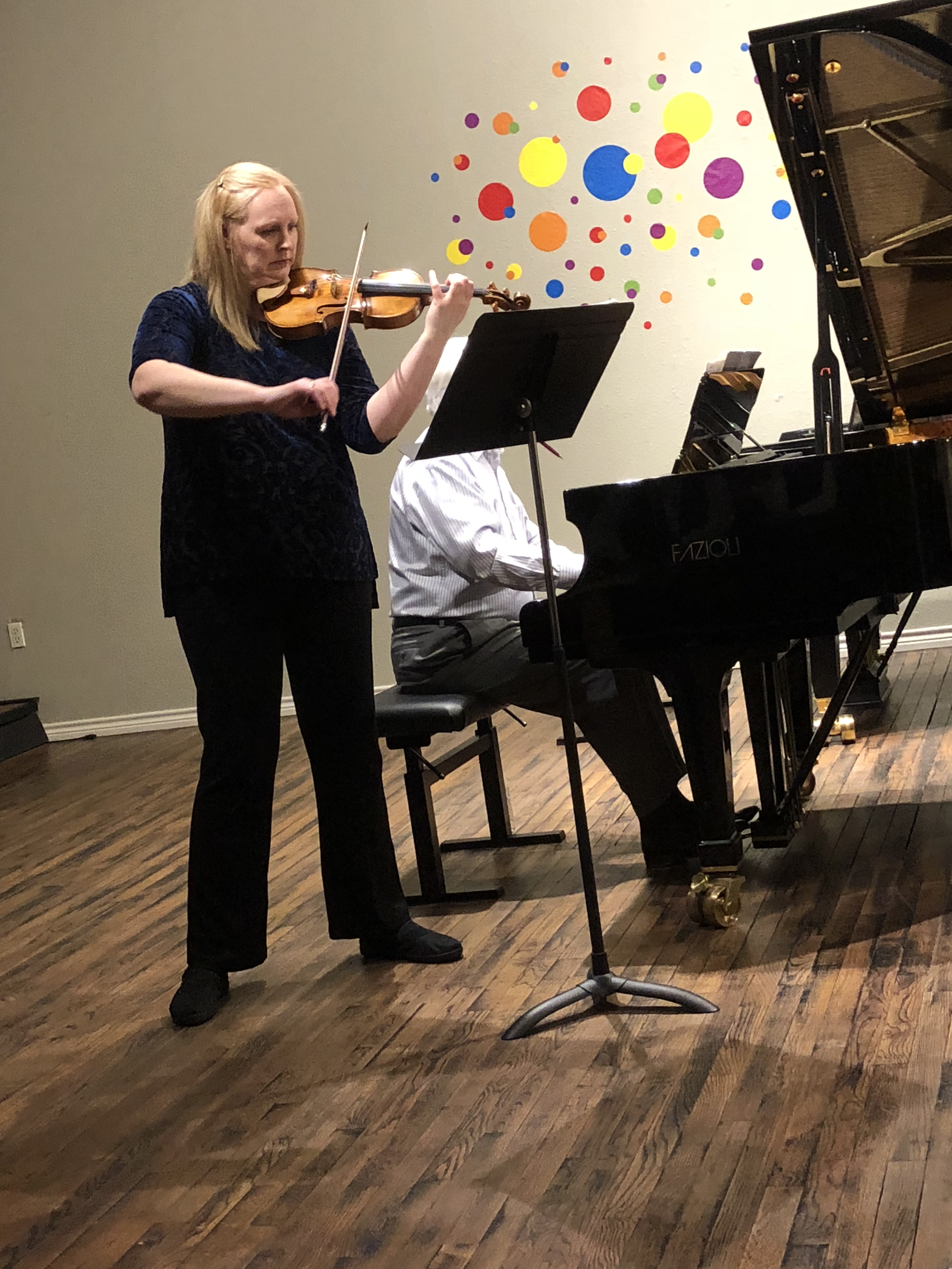 An estimated forty or so hard-core chamber music fanatics were treated at the Fibonacci Space on 6th St. Thursday night to a preview performance of the concert that David Palmer, artistic director of CMA and Annie Chalex Boyle of TTU will play at the Fruttilar Musical Weeks in Frutillar, Chile.
