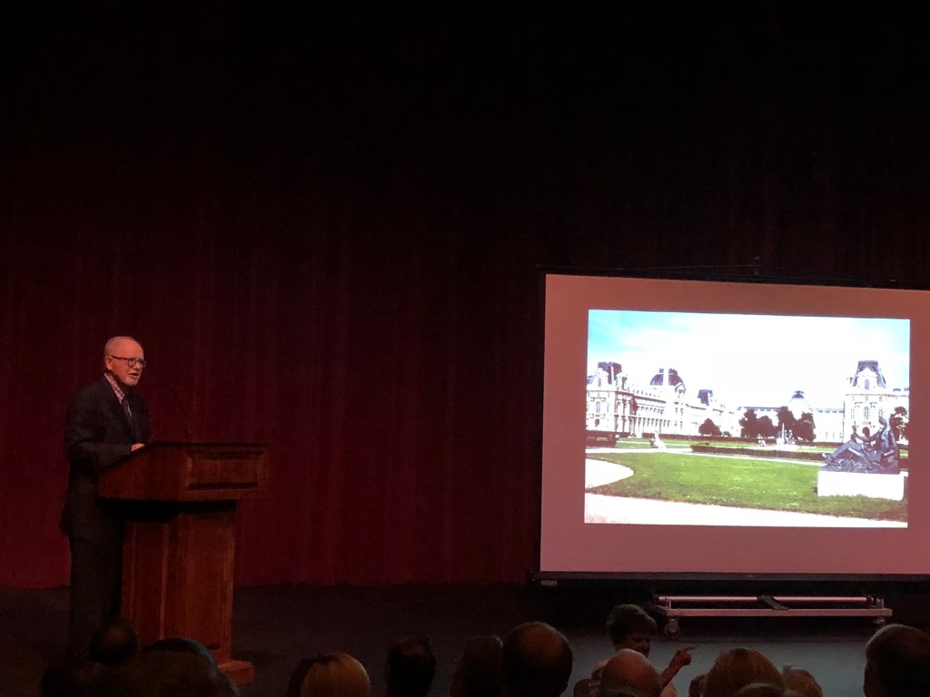 A full house at the Amarillo College Concert Hall Theatre gathered to hear his presentation, in which he announced at the onset to depict the Louvre as a complicated palimpsest of buildings showing an architectural evolution over seven centuries. And, he kept the audience in rapt thrall as he waxed eloquently palimpsestic for an hour.
