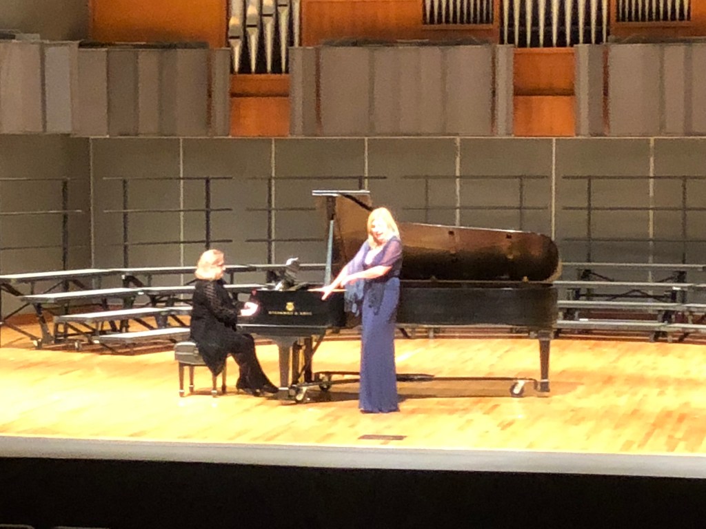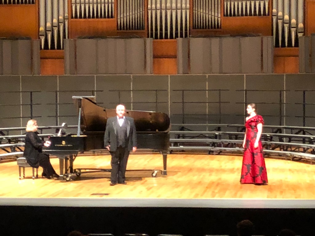 MaryAnn Kyle, mezzo from Mobile, sang Habanera from Bizet’s Carmen with Mila Abbasova accompanying. Ms. Kyle sang the serial seductress to perfection, sashaying into the audience to bewitch and beguile a captive male audience. The hall could well face indictment as an accomplice for Carmen’s crimes of the heart.