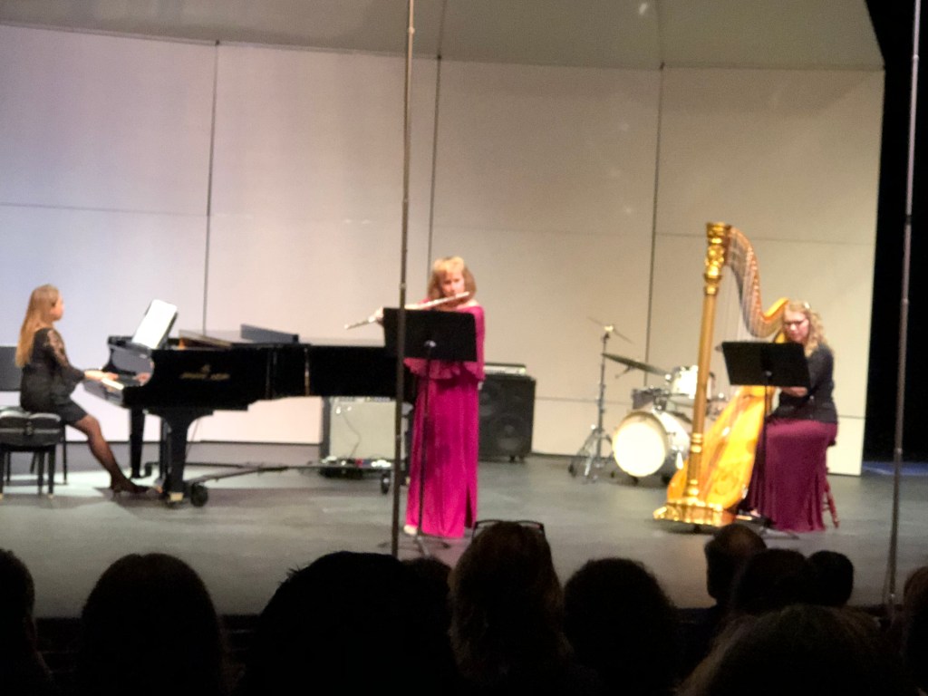 Cassandra Hussey, harp, Kay Fristoe, flute and Puntita Panyadee, piano, played Mozart’s Concerto for Piano, Flute and Harp, a nice touch on any stage in the Comancheria.