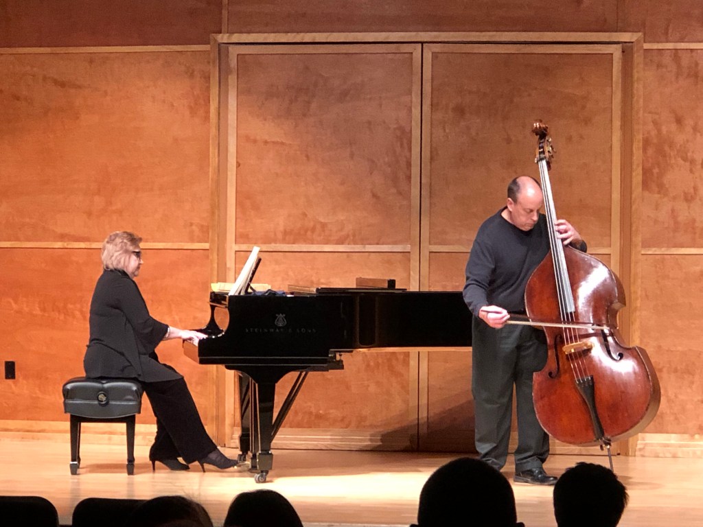 Accompanied by Mila Abbasova on the piano, his program intentionally showcased the upright’s immense range and capacity. Two of the works, long considered staples of the bass repertoire, are noted.